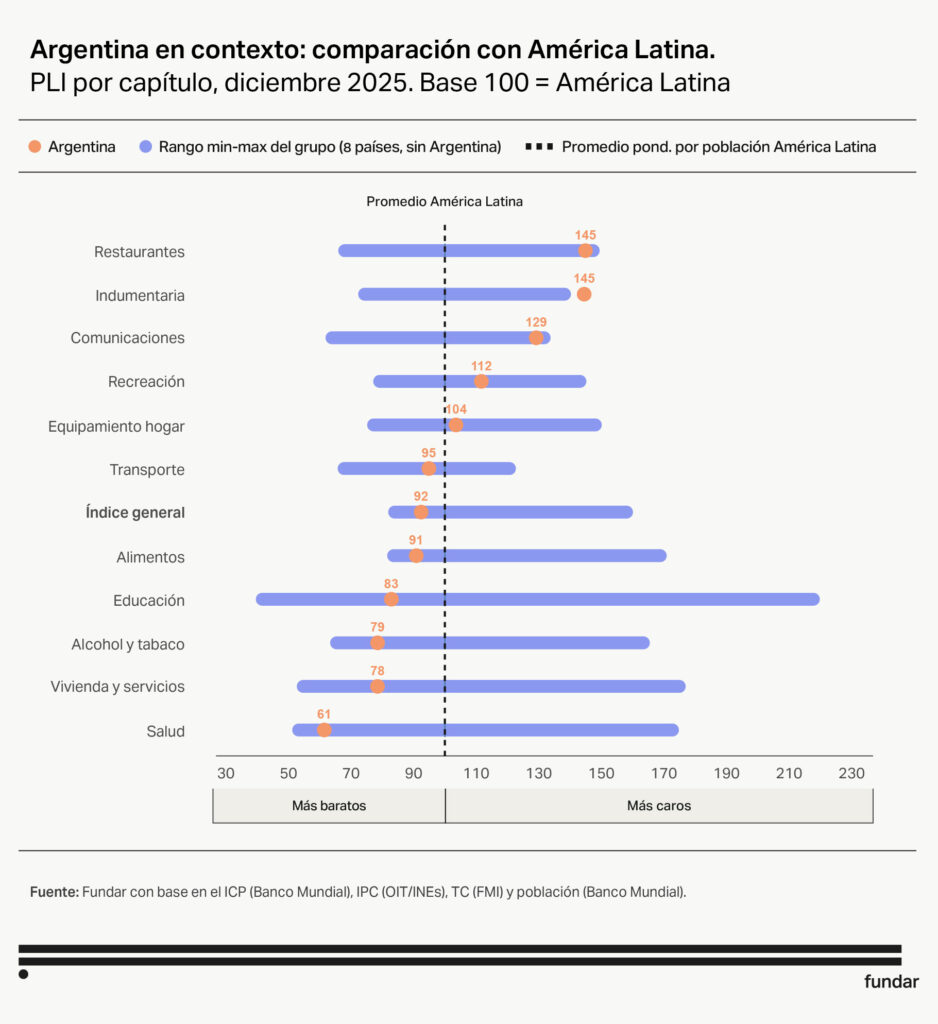 ➜ En los rubros en los que somos más caros, como restaurantes, indumentaria, recreación y equipamiento del hogar, nos volvimos más baratos.